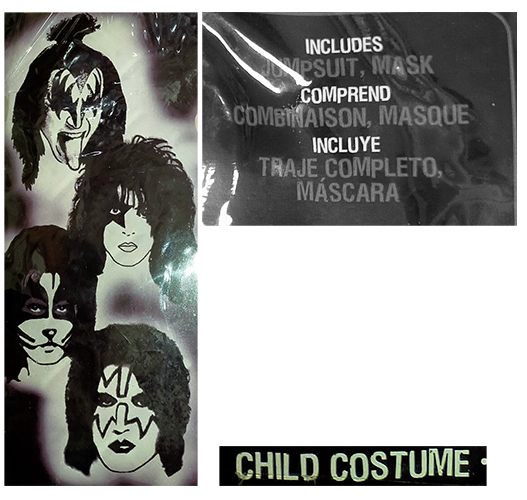 Costume Child: b/w faces on left: jumpsuit, mask: Demon, Catman