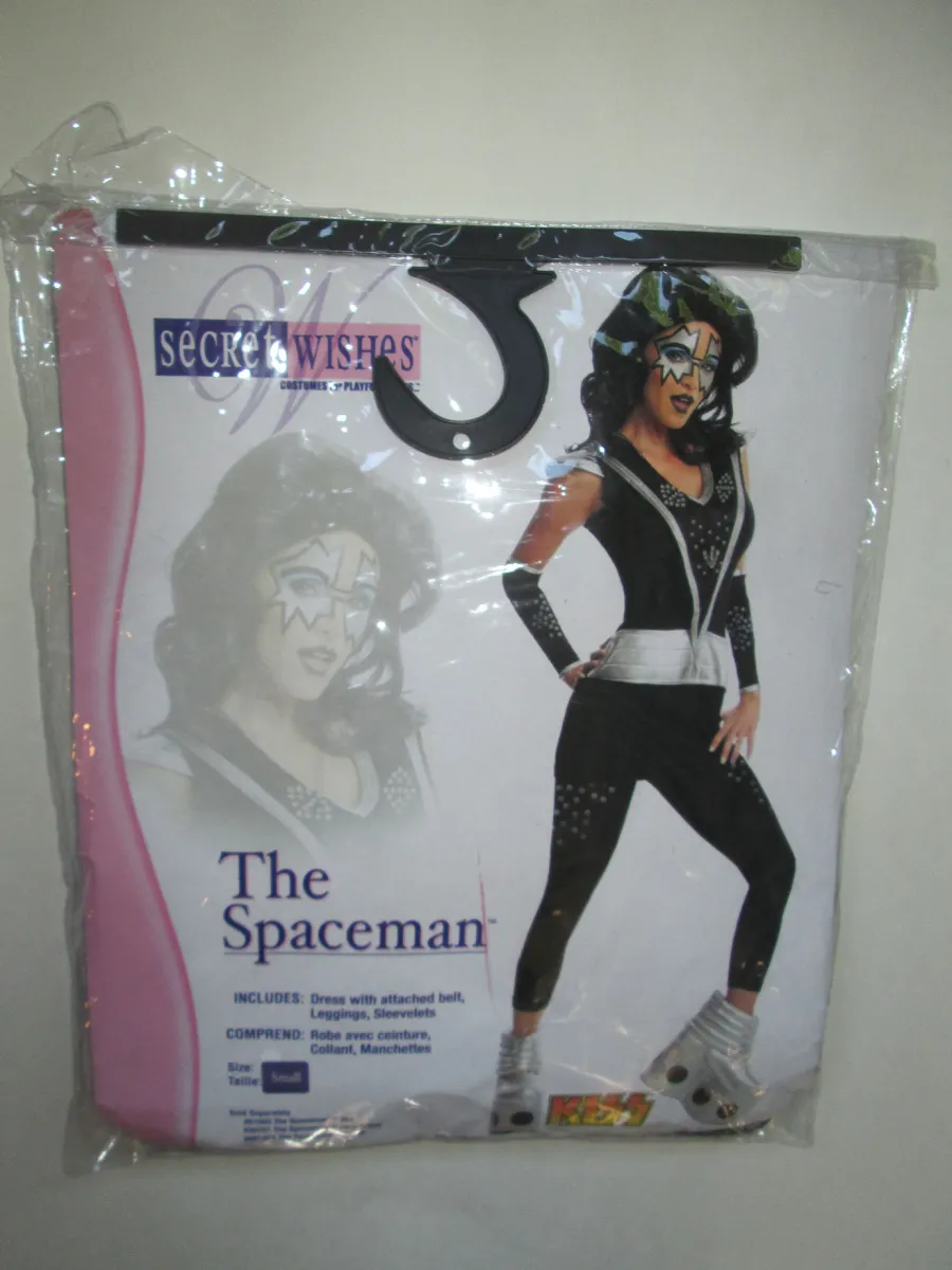 Costume Child: b/w faces on left: jumpsuit, boot tops, belt & wig: Starchild, Spaceman